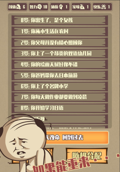 4、重启你的人生,在这段重新开始的人生中,你将要从刚出生的时候一直玩起,至于最终能够活到多少岁就看你会怎样操作。