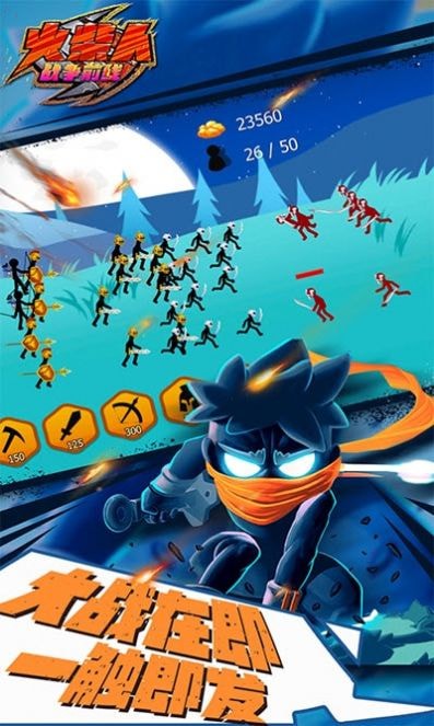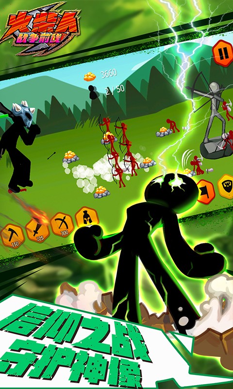 在火柴人战争前线游戏中两军对垒,比拼的不只是单纯的战力,还有军事和策略能力,敌人数量会越来越多,战斗力越来越强,与此同时,你也要不断地升级!