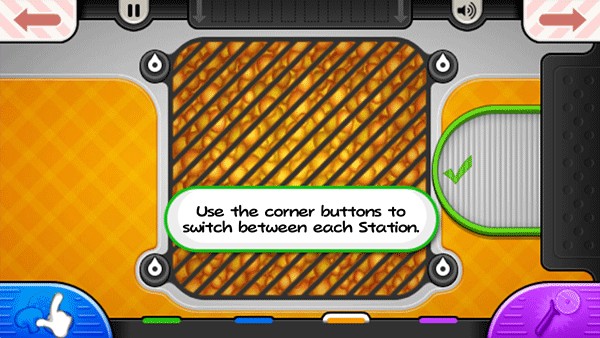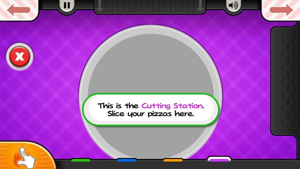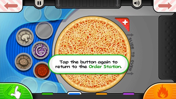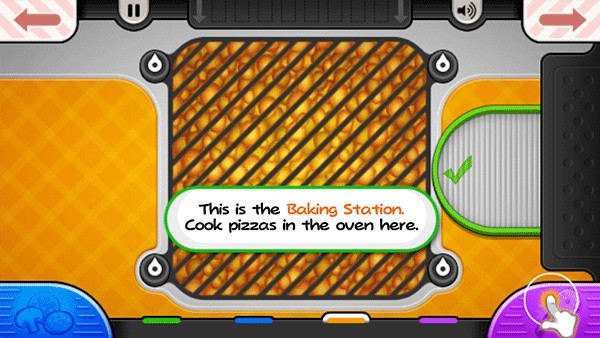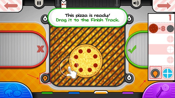 9、烤披萨的时候记得注意火候,当左下角的“火”变成橙色时,就可以将披萨拖至切割站进行切割了;
