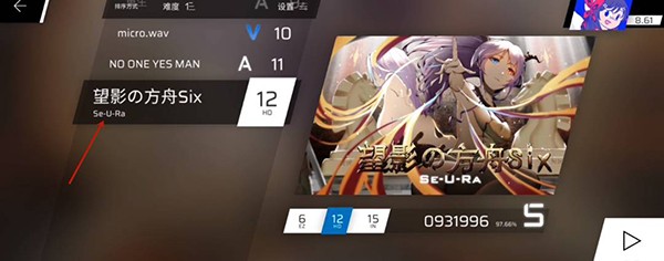 4、然后选择【望影の方舟six】这首歌,任意难度。
