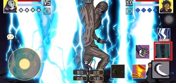 3、在你的头像旁边是血条和蓝条,最重要的是你可以释放大招的次数,完美地使用像素图形还原每个忍者的战斗技能,甚至还有原声演员配音。