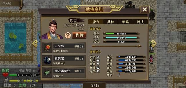 注意事项:这关可以分兵打,让有吃货技能的臧霸一个人打下面关隘,吕布高顺打右边的关隘,血少就吃豆,高顺记得气合。