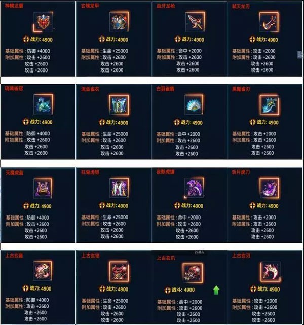 一般我们说顶级神器就是三攻、四攻红色神器!红色品质是顶级大家什么疑问,四攻也没疑问,有疑问的是为什么三攻也会是顶级的?看了上面基础属性之后我们就知道了,由于基础属性是固定的,左上角部件的盾之类的最顶级的也只能是一防御三攻击,右上角衣服之类的最顶级的是一生命三攻击,左下角矛之类的最顶级的是一命中三攻击,只有右下角的刀之类的最顶级的才有可能达到四攻。或者我们可以称之为,最顶级的神器就是红色附加属性三攻神器,简称附加三攻。