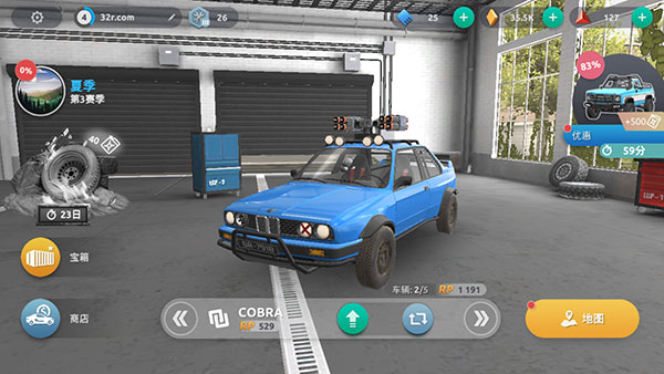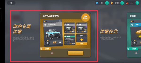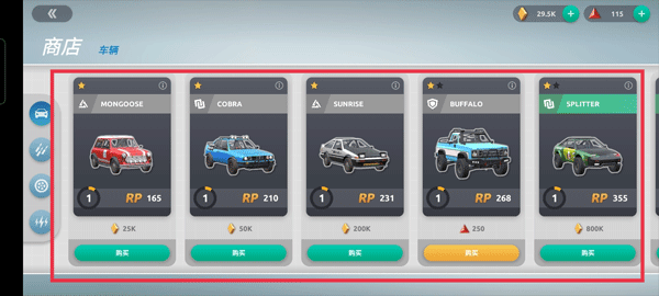 宝箱可以解锁不同的汽车类型和道具,不过需要蓝色的货币才能进行购买。