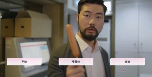 2、哥哥拿起一根香肠问男主要不要吃,选择“喂我吃”。