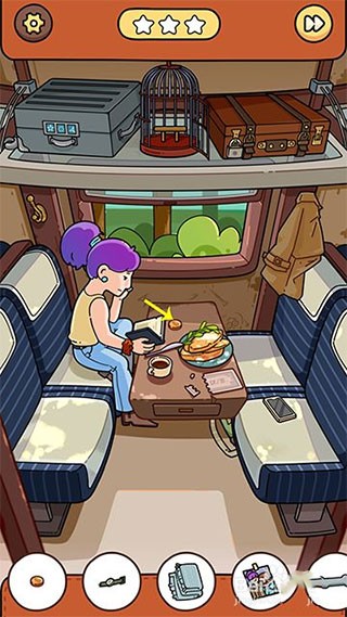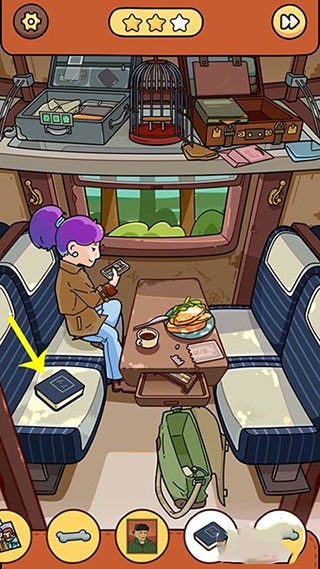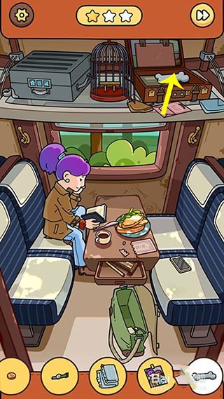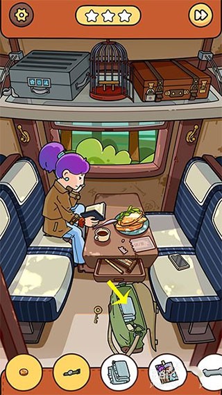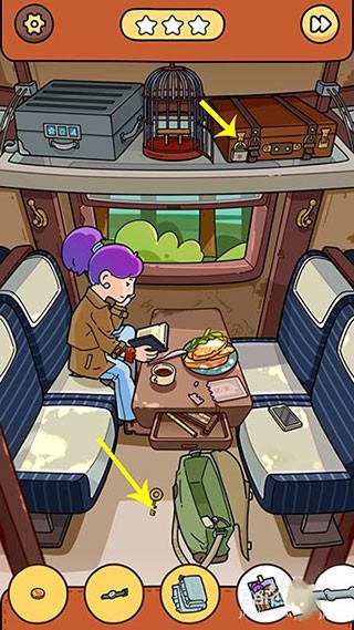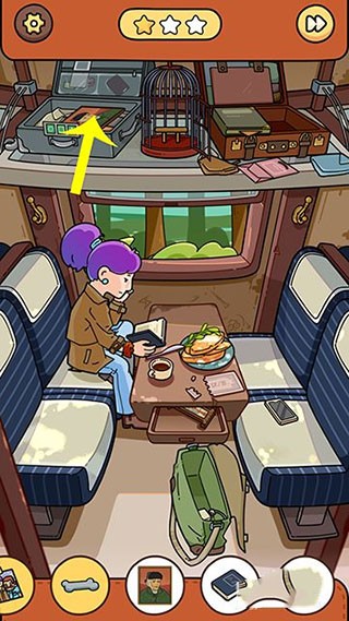 10、回到火车界面,火车到站提醒后,窗户出现猫头鹰点击收起,猫头鹰列车物品找齐通关。