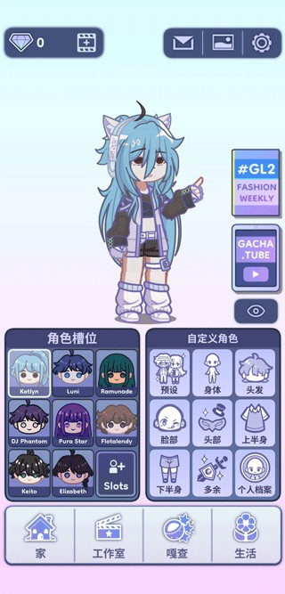1、进入gachalife2最新中文版,如图,玩家可自由更换角色,以及创建新角色;
