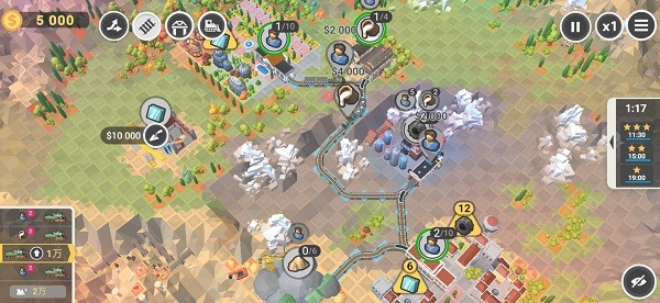 第二个难点:不要摧毁超过5000的物体,尽量避开石头树林等物体,可以适当绕路,也要注意绕路资金缺乏。