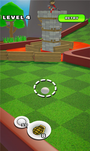 1、挑战各种不同设计的高尔夫球场,利用炸弹准确摧毁目标;