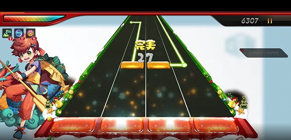 4、接下来便可以开始,不断的敲击迎面袭来的音符块了!