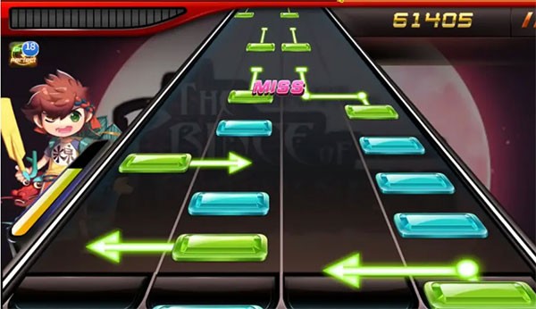 箭头:基础音符中最难的一种,需要从起始轨道按键迅速滑到结束轨道按键,滑动太慢或方向错误会判为MISS。
