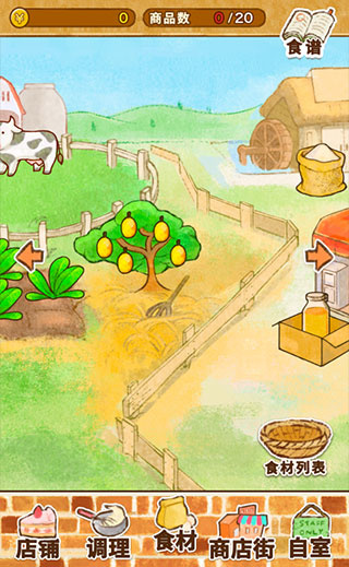 3、点击底部的【商业街】可以采购各种食谱来制作美味的甜品。