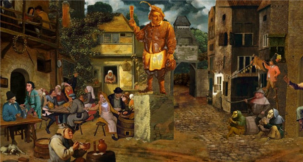 6、和坐中间的人对话,羡慕他们的生活,得到嫉妒,再拿罐子去接最右边的酒