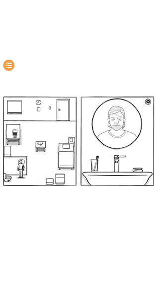 2、首先是类似教学关卡,去往1处点击后右侧点击杯子里的牙刷,然后依照提示左右拖动刷牙。之后点击水龙头,使用毛巾洁面完成。