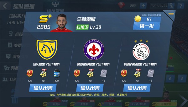 球员回收的话,游戏中不需要的球员可以在球员管理界面进行解雇获得转会基金。转会基金可以在转会市场兑换高评级的球员,所以游戏中多余的球员记得解雇兑换资源,总有一天你也能积少成多组一套纯S+阵容。