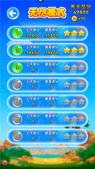 2、在无尽模式中把游戏页面的所有泡泡都消除殆尽,则游戏通关成功,可以获得不同的奖励。