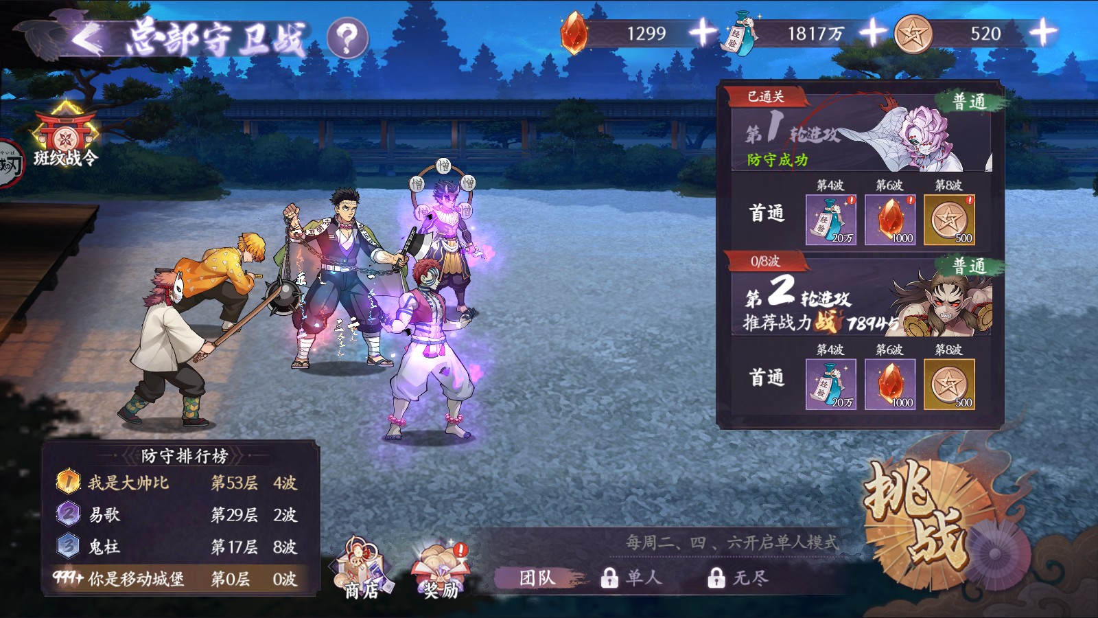 6、本玩法每日不限挑战次数,但每一波的波次奖励每天只能获取一次,波次奖励在每天0点重置。