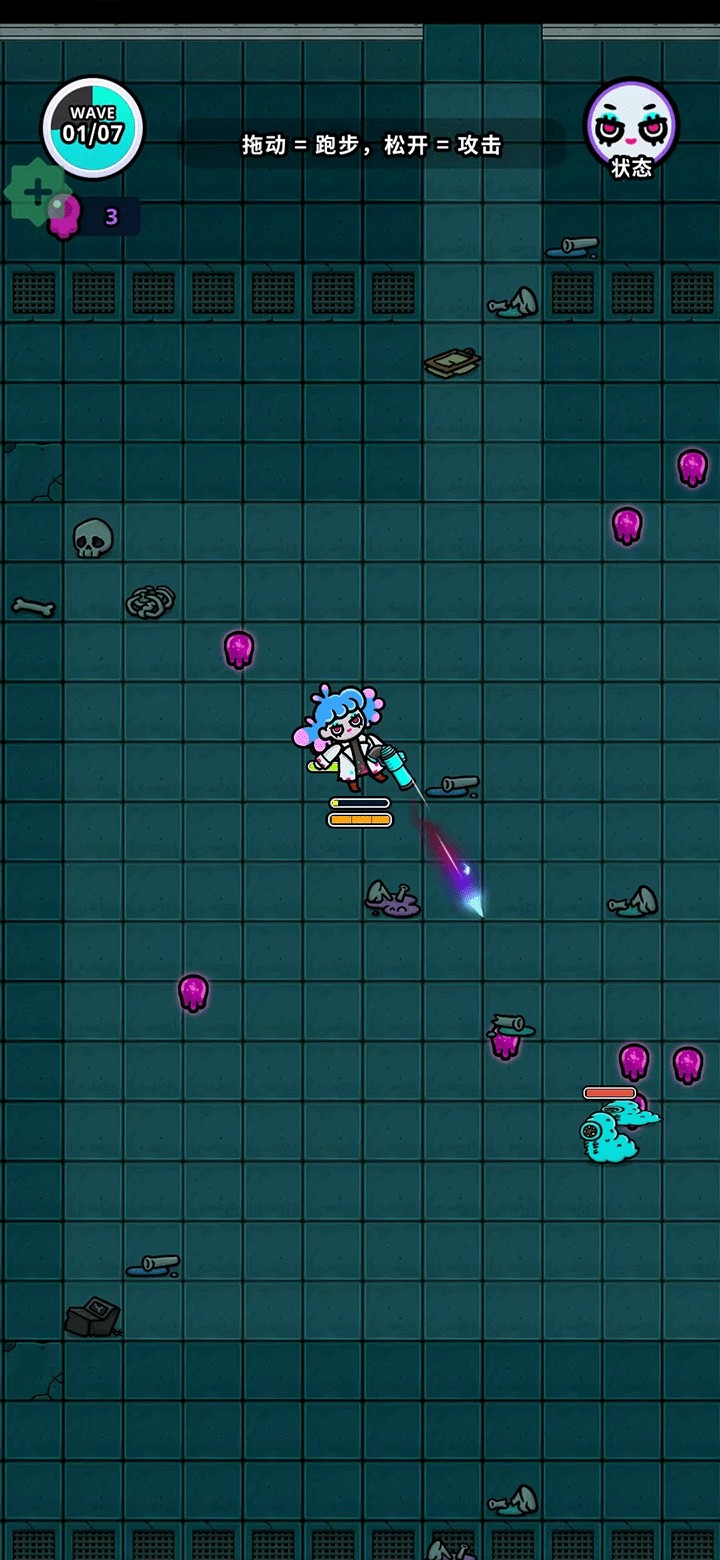 1、游戏中,玩家通过滑动屏幕来控制角色移动,松开手指即可自动发动攻击。