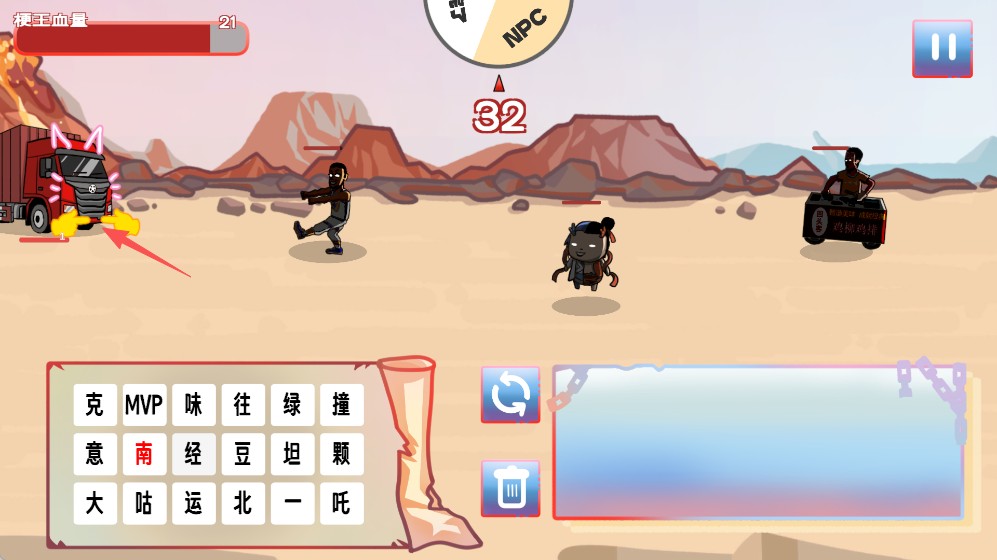 4、敌方单位为黑化版的热梗角色,玩家需通过持续拼字应对进攻;若拼出重复的梗词,则会提升已召唤角色的等级,增强其战斗力。