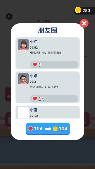 3、装饰你的小屋!玩家制作甜品获得金币后,可以使用金币装饰自己的甜品屋,通过升级小屋的装饰来吸引更多的顾客前来品尝!
