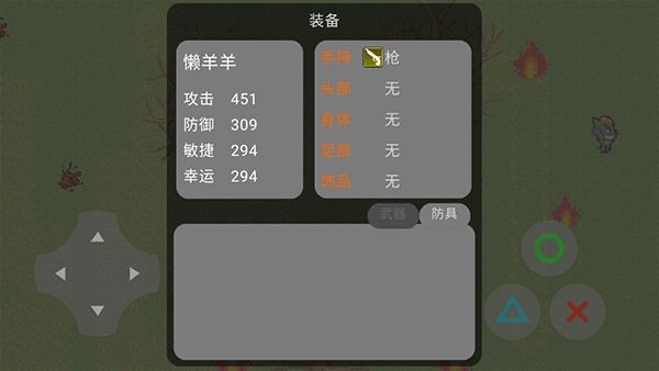 7、“×”是菜单键,点击该键即可配置装备、存档、读档、退出。