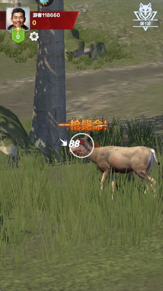 3、举枪直视目标,瞄准要害器官,不断磨练射击技巧,命中完美动物。