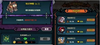 知识神殿分别为战士、弓手、法师三种职业增加多维属性。同样因为资源有限,前期我们优先升级:法师的生命,战士的闪避和生命,顺序:法师生命>战士闪避>战士生命。