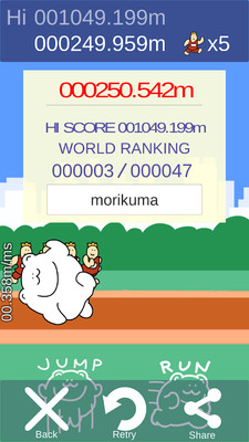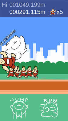 3、游戏计算白雄奔跑的距离为成绩,并且有最好成绩显现在上方