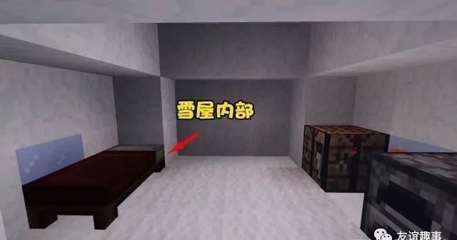 在雪屋之中,有一个工作台和熔炉,另外还有一张床,相当于开局就拥有了一个临时的庇护所。但值得一提的是,这个雪屋是生成在雪域和丛林的交接处,要是你真的不习惯雪域的环境,还可以回到丛林生存噢。