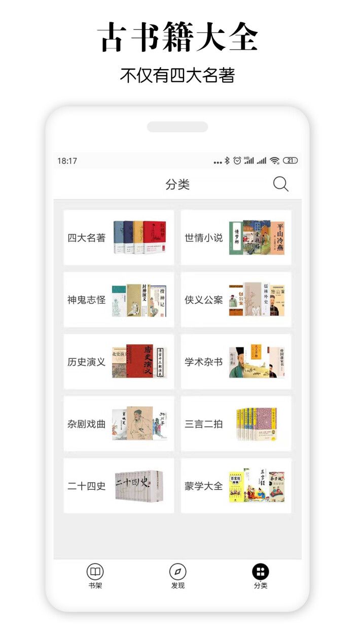 1、各种古文诗歌小说可通过分类或搜索书名直接查找的,非常方便哦!