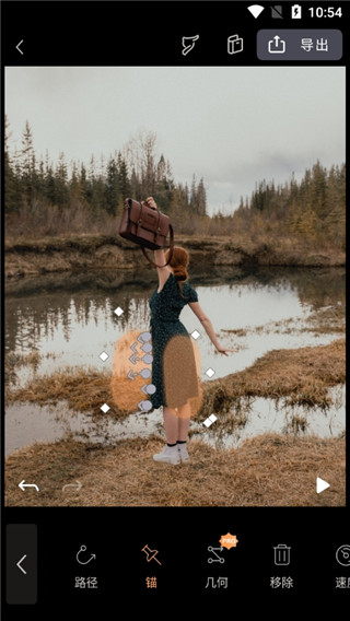 要对照片进行动画处理,放置箭头定义图像中的运动。添加锚,逐渐降低在动画区域内的速度。