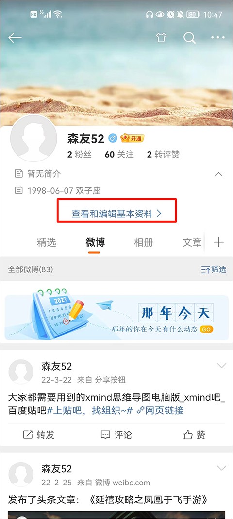 2、点击查看和编辑基本信息,如果没有显示请点击下简介下方隐藏下拉。