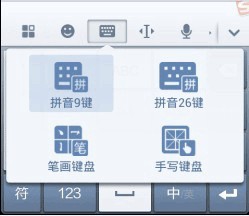 2、切换软键盘的输入模式: 竖屏状态下默认使用9键,横屏状态下默认使用26键。用户可通过左右划过键盘区域更换键盘模式。也可以通过点击键盘顶部的键盘切换键,打开输入法切换菜单,选择想要的键盘样式:“拼音9键”、“拼音26键”、“英文9键”、“英文26键”。同时,也可以在设置项-键盘设置中进行设置。