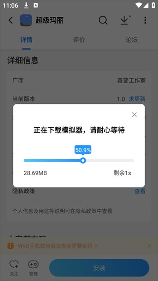 5、点击超级玛丽,然后下载,然后每个游戏都有注意事项,大家要仔细阅读,因为这些是对打开游戏有帮助的指南;