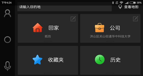 1、主页面还有一个很大的特点哦,不同的功能区域辨识度很强,通过图标、颜色的区分可以让您节约时间,大大提高开车安全性。导航区域非常明显,虽然是轻导航,但绝对面面俱到,就我目前使用过的驾驶类APP而言,只有亿连这一款有聚合页面。在输入目的地的时候也可以选择语音或者手动输入。