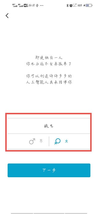 3、为小岛取完名字后,你需要给自己也取一个名字并选择自己的性别