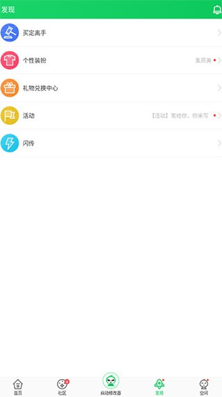 发现板块当中支持买定离手、个性装扮、活动、闪传等等;
