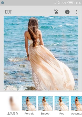 1、用Snapseed开启要解决的照片,比如下边这张海滩美女背影图。