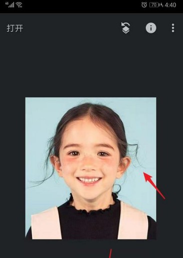 4、如果图片过小,我们可以使用两指外扩的方式将图片放大,然后进行修复。