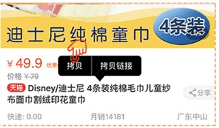 1、首先在淘宝app中挑选喜欢的商品,长按其标题选择拷贝标题或链接。
