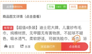 3、选择对应商品并查看详情,然后点击领券购买按钮,复制淘口令后继续打开淘宝app。