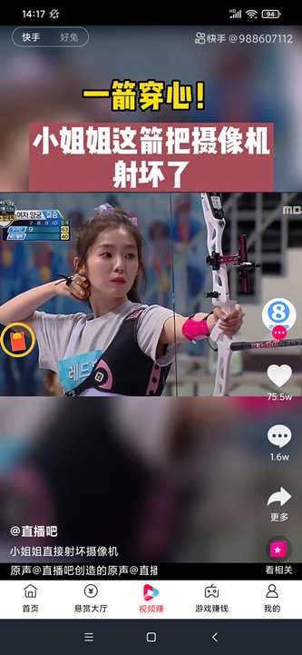 打开赏帮赚APP之后,我们就可以看到底部有个“视频赚”的按钮,点击进入之后就可以看视频啦,与抖音的页面是很像的,刷一会就能赚1元钱,不要太简单。