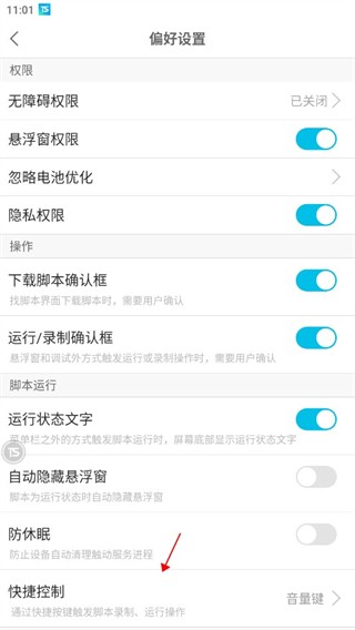 点击【音量键】-选择音量键+或者音量键-为运行脚本、录制脚本或者无。
