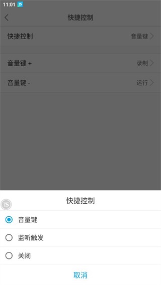 点击【音量键】-选择音量键+或者音量键-为运行脚本、录制脚本或者无。