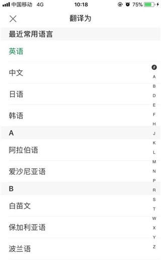 5、我们可以自由选择语种:不过这个功能的好处是,它不单单是转换英语,软件里内置了非常多的语种,我们可以切换语种,然后我们说出的中文就可以翻译成各个语种用在不同的途径了。