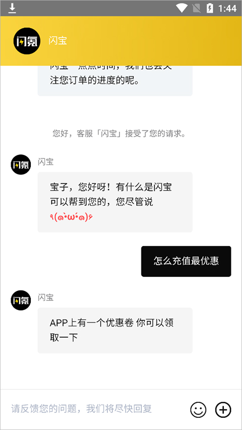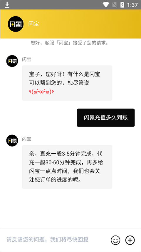 5、如有任何疑问还可以在应用首页处点击右上角的客服图标,在打开的客服页面中进行输入相关疑问进行提交,客服会立即回复的。