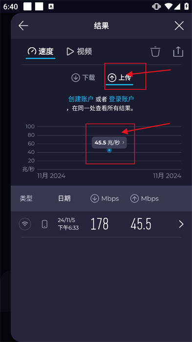 4、切换到【上传】也对上传的速度做出了详细的介绍,如下图所示。