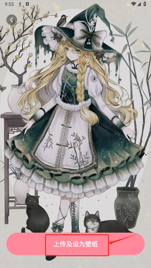 2、接着进入手机相册,在相册内选择好壁纸并点击上传及设为壁纸。