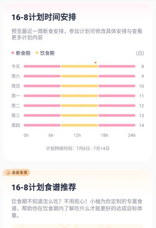 3、辟谷、断食、生酮爱好者的专属计划工具。通过小柚提供的科学断食计划,帮助您自律瘦身。
