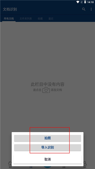 5、用户可以将自己的文档拍照或者导入识别进行添加自己的文档。